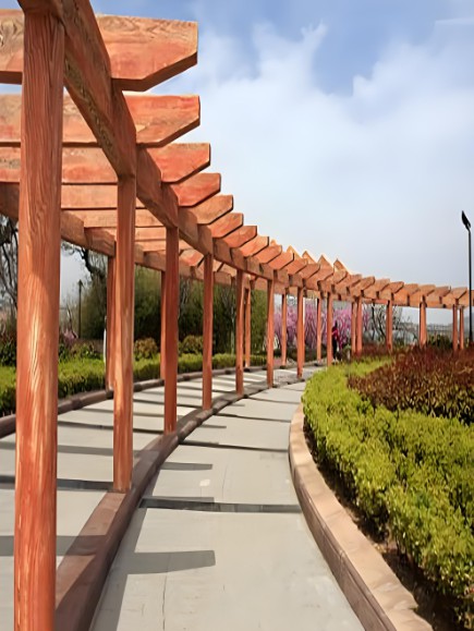 木制長廊具有自然、溫馨的質感,能夠很好地融入自然環境,提升景觀的整體美感。木材的紋理和質感也能增添歷史和文化底蘊。
